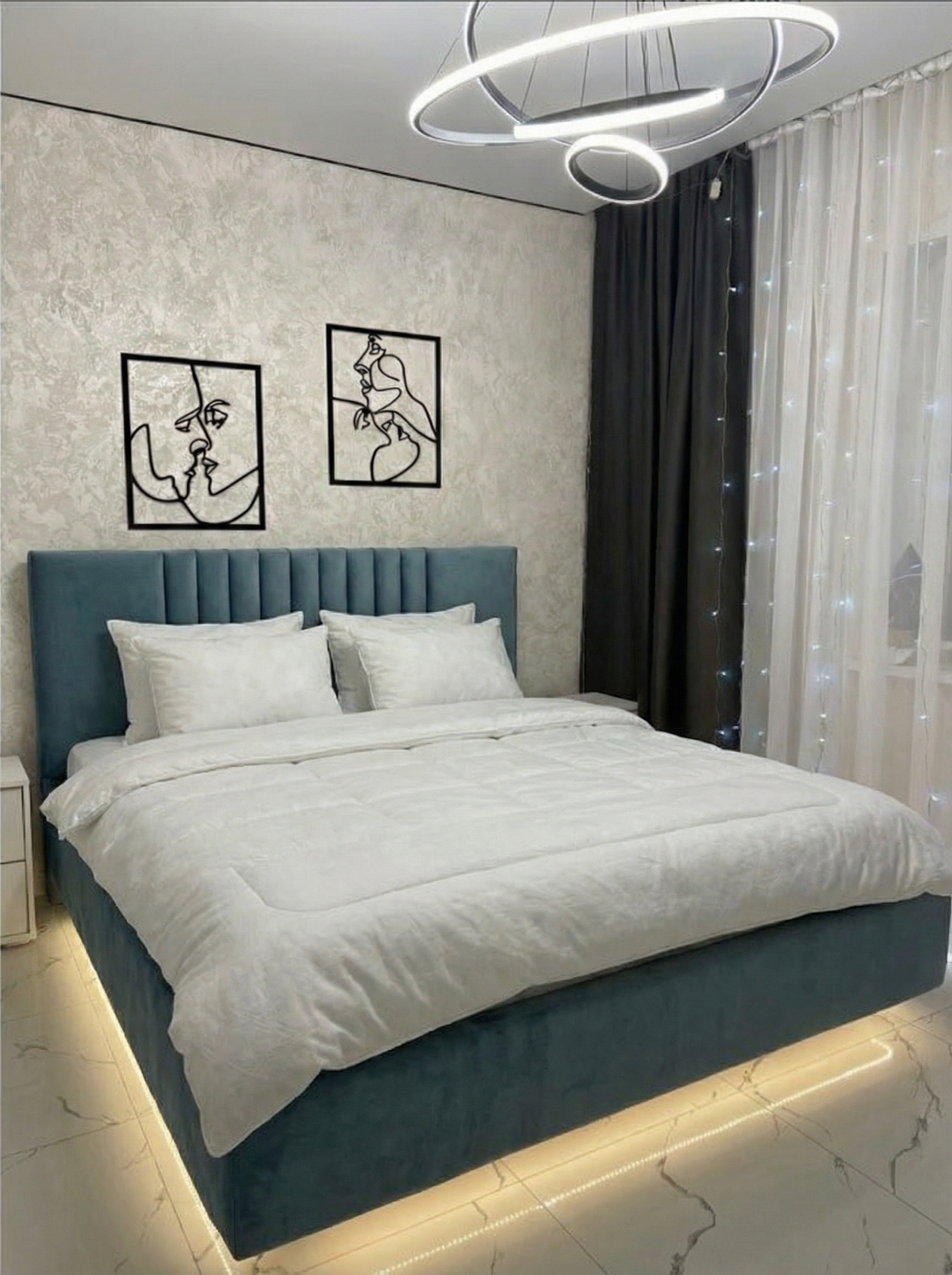 Кровать очень стильно выглядит, прям как из Pinterest, давно такую искала. Долго выбирала и остановилась на этом экземпляре. В приоритете был подъемный механизм, большой ящик, мягкая основа. И большая спинка со стороны головы. Отличная ткань, всё крепкое и надёжное. Комплектом к кровати взяли матрас. Просто идеальный, прошит аккуратно, чистый, соответствует всему заявленному, стал любимым местом семьи. Этикетка производителя на месте, всем советую такой матрас, совсем не пожалела, что купила такое спальное место.